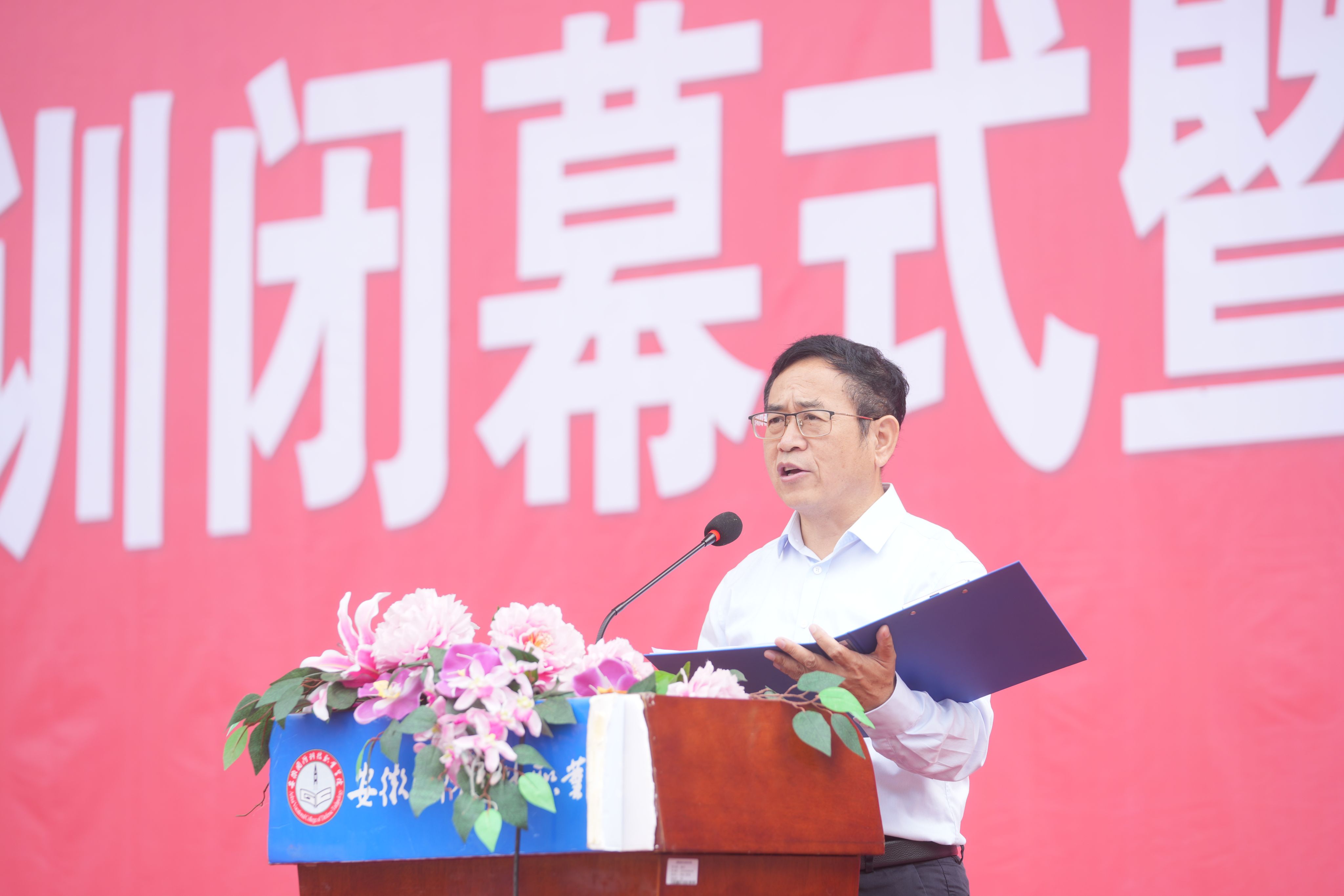 孙武代表学校人武部向承担这次军训任务的所有教官、六安市红十字救援队和学校医务人员 表示衷心的感谢!向参加、指导本次军训的全体辅导员致以亲切的问候!向圆满完成军训任务的全体同学表示热烈的祝贺!他充分肯定了同学们在军训中展现出的吃苦耐劳、严守纪律、团结协作的优秀品质。他指出,今年的军训,取得了可喜成绩:一是同学们的理想信念更加坚定,精神境界得到提升;二是同学们的身心得到磨炼,集体观念、时间观念和荣誉观念得以增强;三是同学们的安全常识得以体验,逃生技能得到提升;四是同学们应急救护的实战演练技能得以施展。