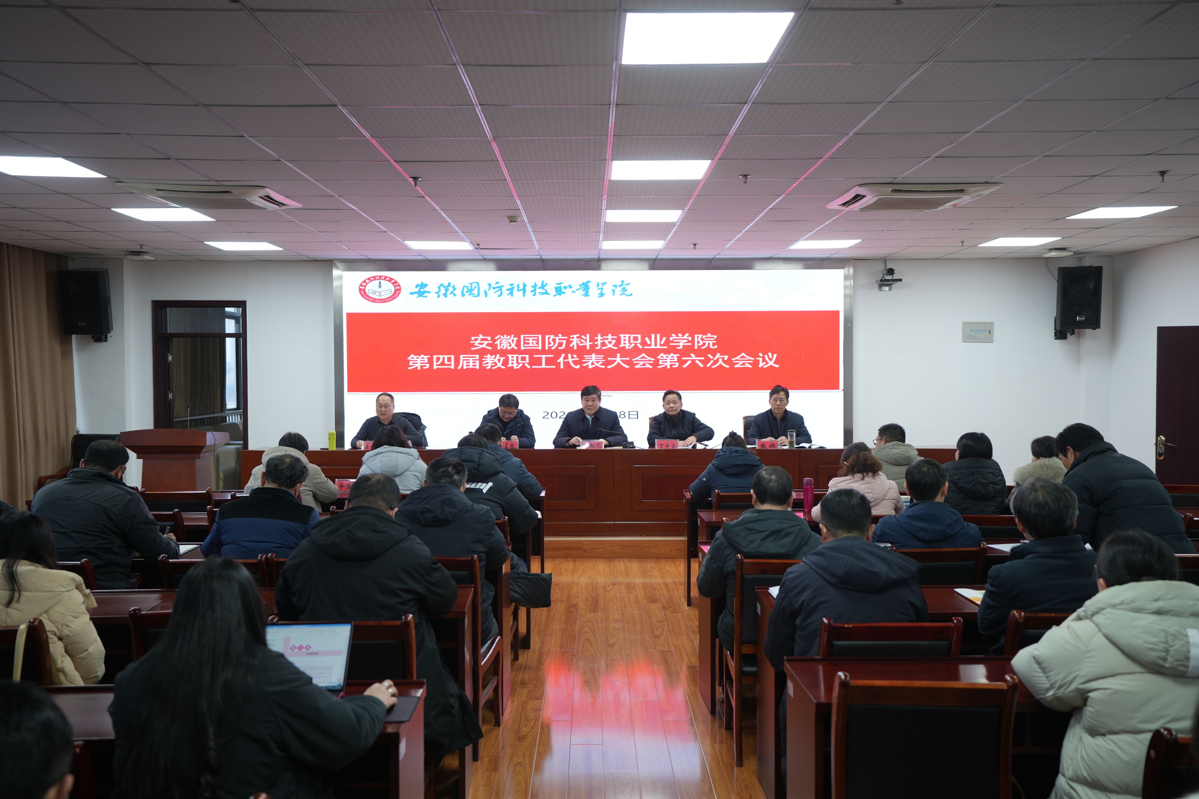 本网讯(工会办 刘亮)1月28日下午,我校第四届教职工代表大会第六次会议隆重召开。校领导余嗣元、徐正红、冯伦久、丁守宝、袁旗及全体正式代表出席会议。会议由校党委副书记冯伦久主持。