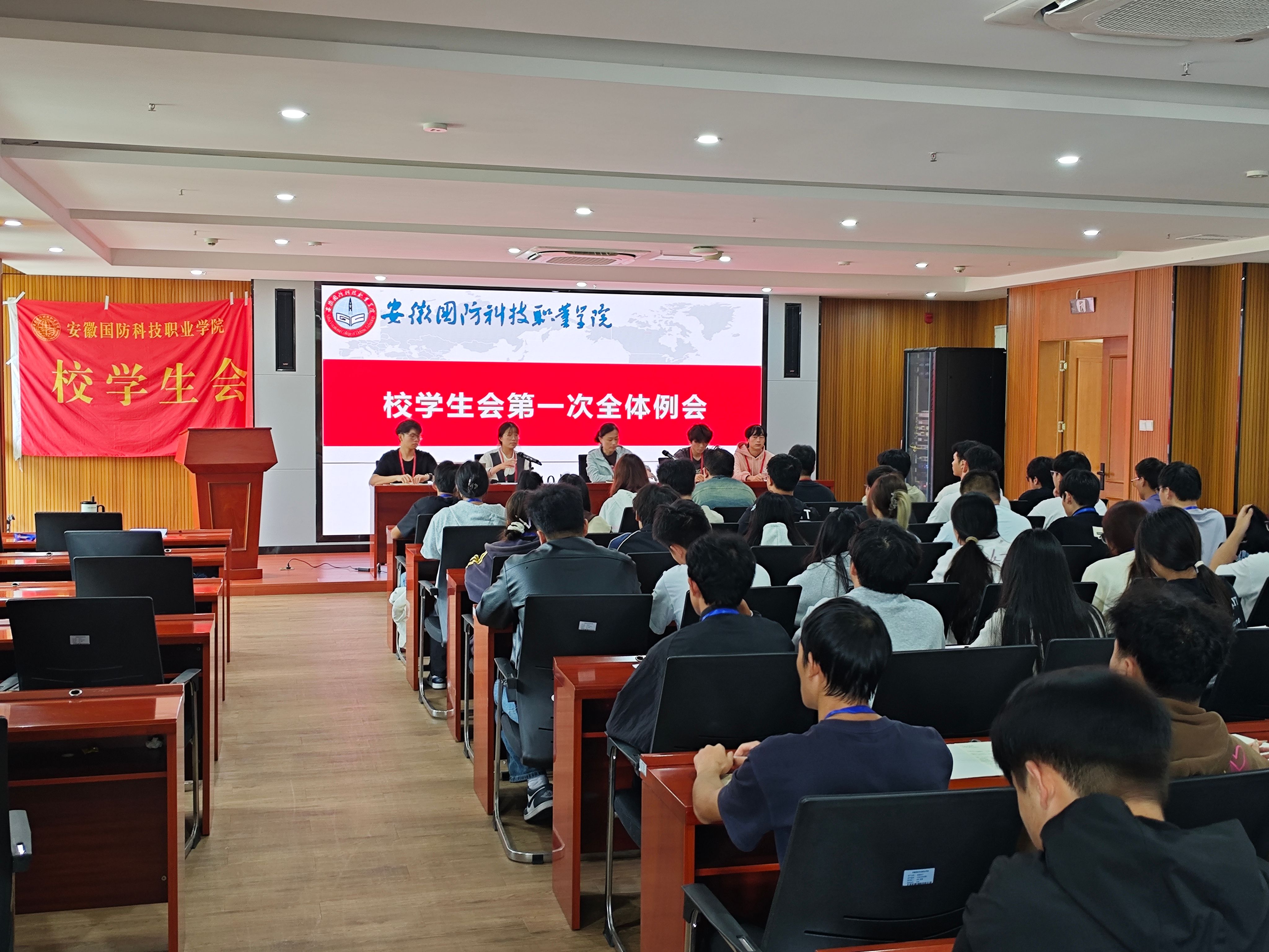 本网讯(学生通讯员 田忠英)为夯实学生会组织根基,凝聚新成员向心力,2025年10月20日,安徽国防科技职业学院校学生会第一次全体例会在产教融合中心第一报告厅顺利召开。校学生会第40届全体成员参会,校团委副书记张凤出席会议,校学生会负责人杨家梦主持会议。