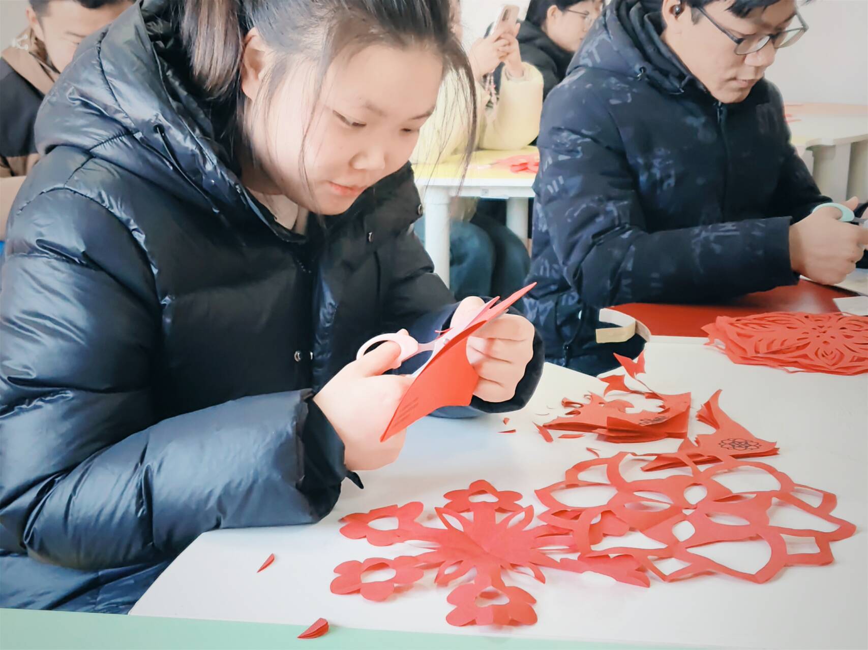 “专注剪纸让内心平静下来,完成作品特别有成就感。”一位参与者分享道。协会负责人表示,此类活动旨在为同学们提供一个通过动手创作来舒缓压力、表达自我的非言语渠道,剪纸过程中的“专注当下”本身就是一种积极的心理调节。